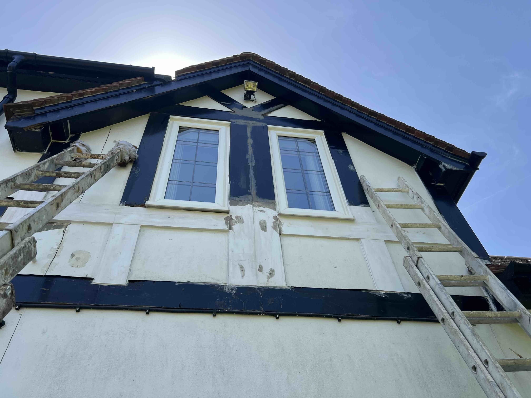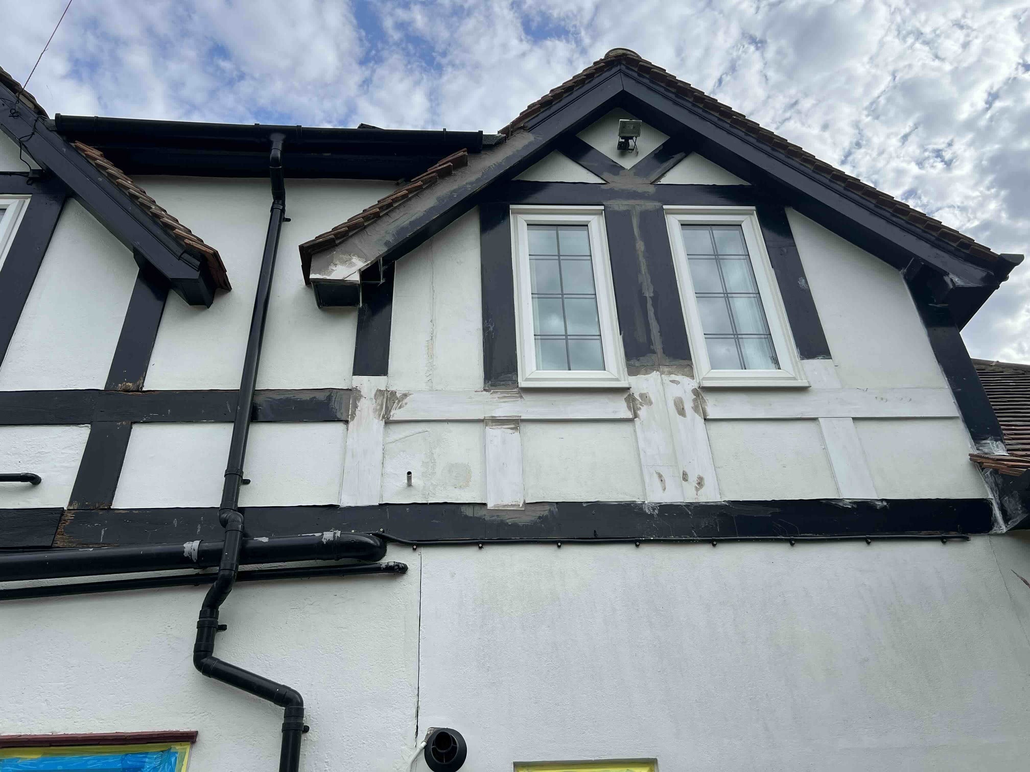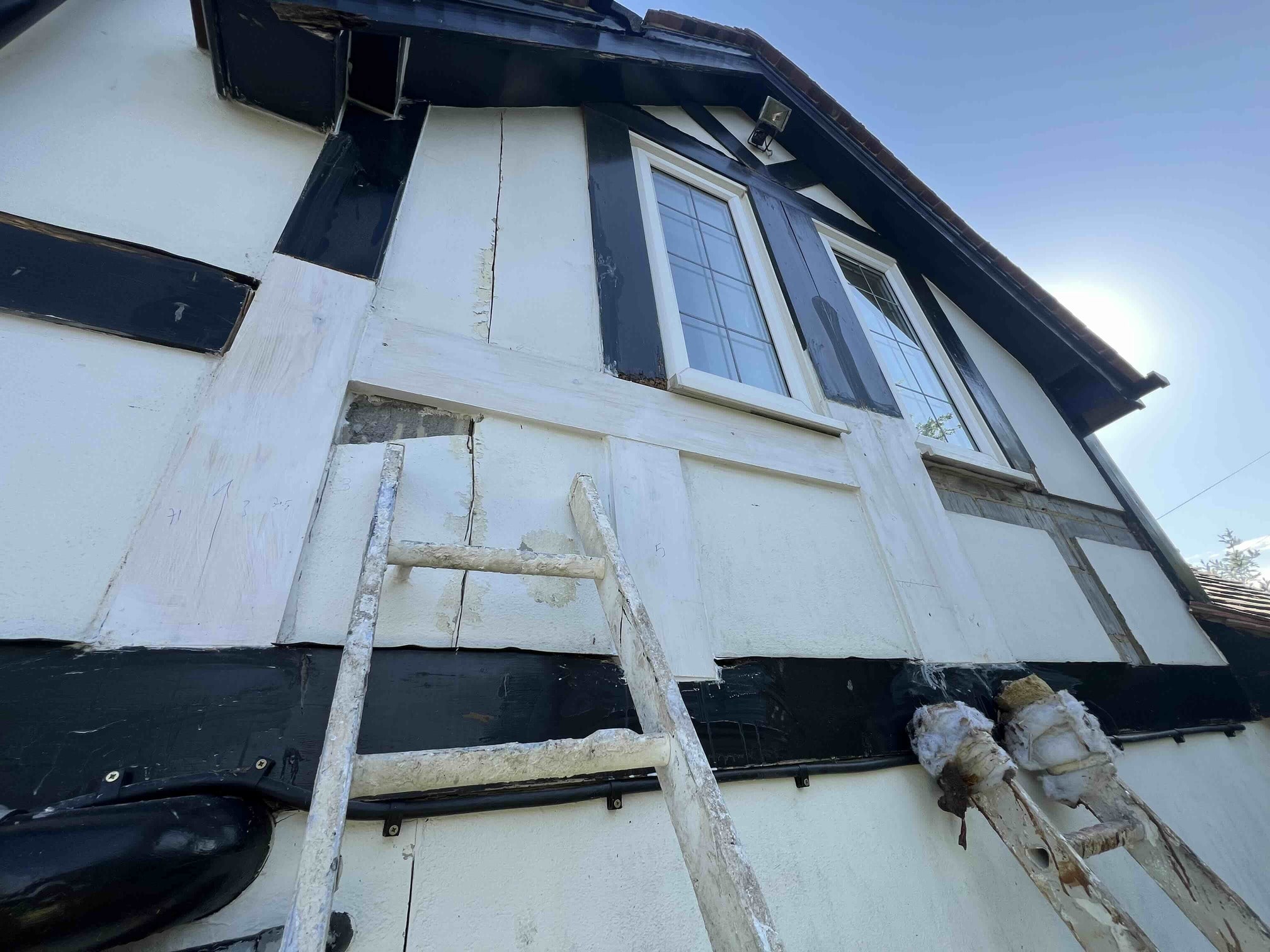 This project involved the renovation of the external façade of a residential property in Hailsham, United Kingdom. Works focused on repairing and refurbishing the front elevation, including multiple repairs to the black timber panels to restore structural integrity and appearance. Additional remedial works were carried out to the exterior façade, addressing weathering and surface defects. Repairs were also completed to the surrounding concrete walls to improve durability and overall finish, resulting in a refreshed and weather-resistant exterior.