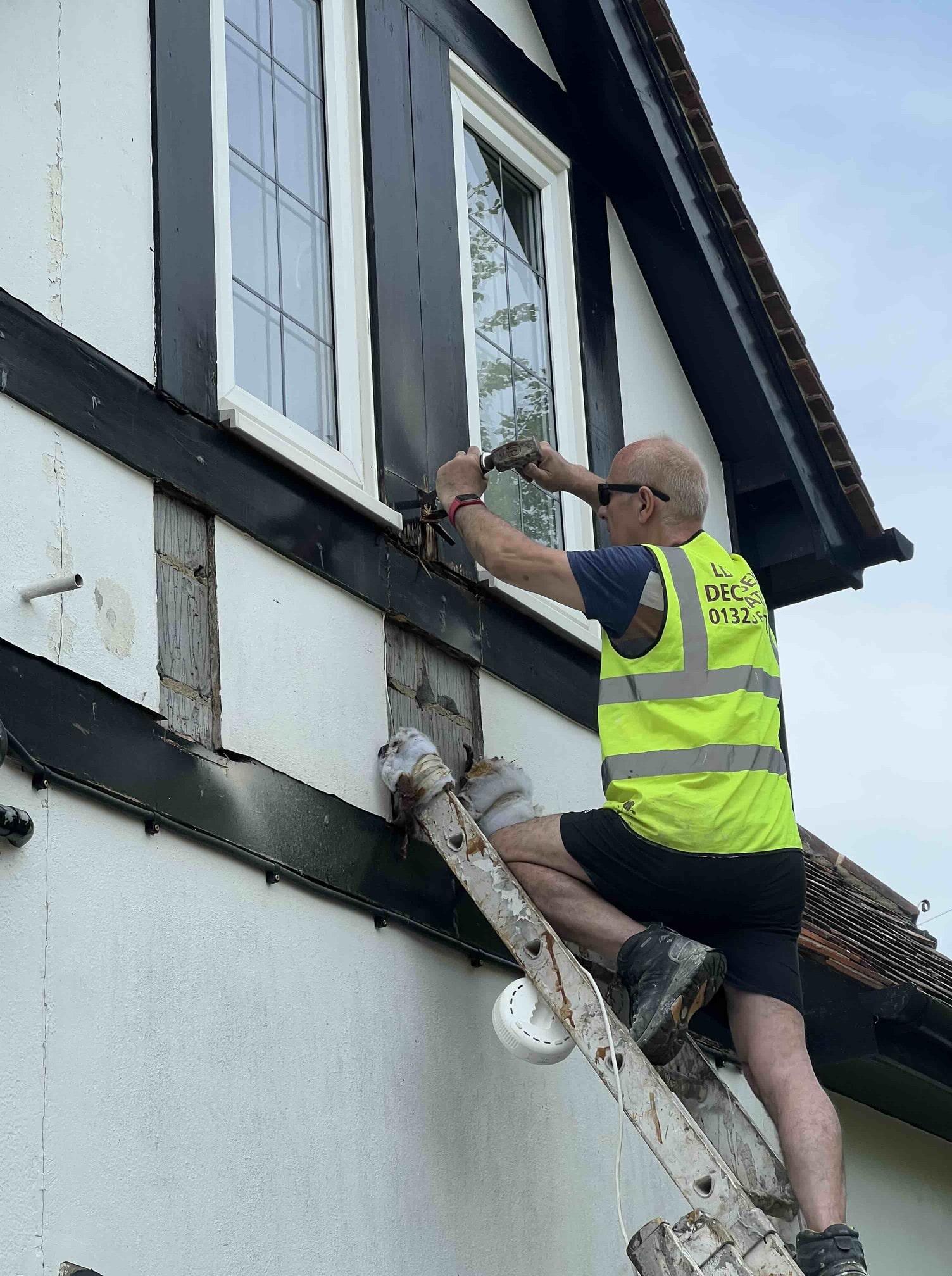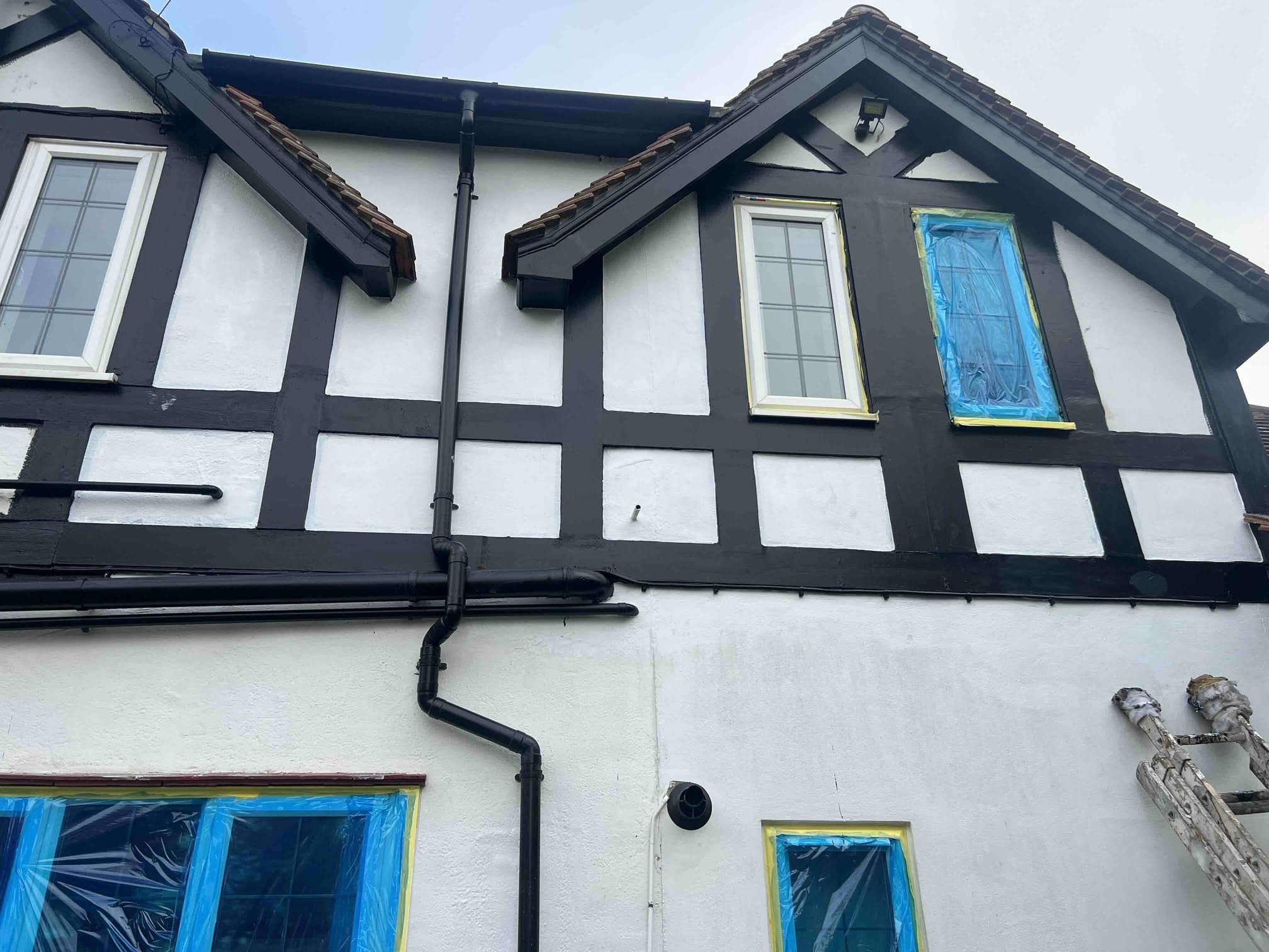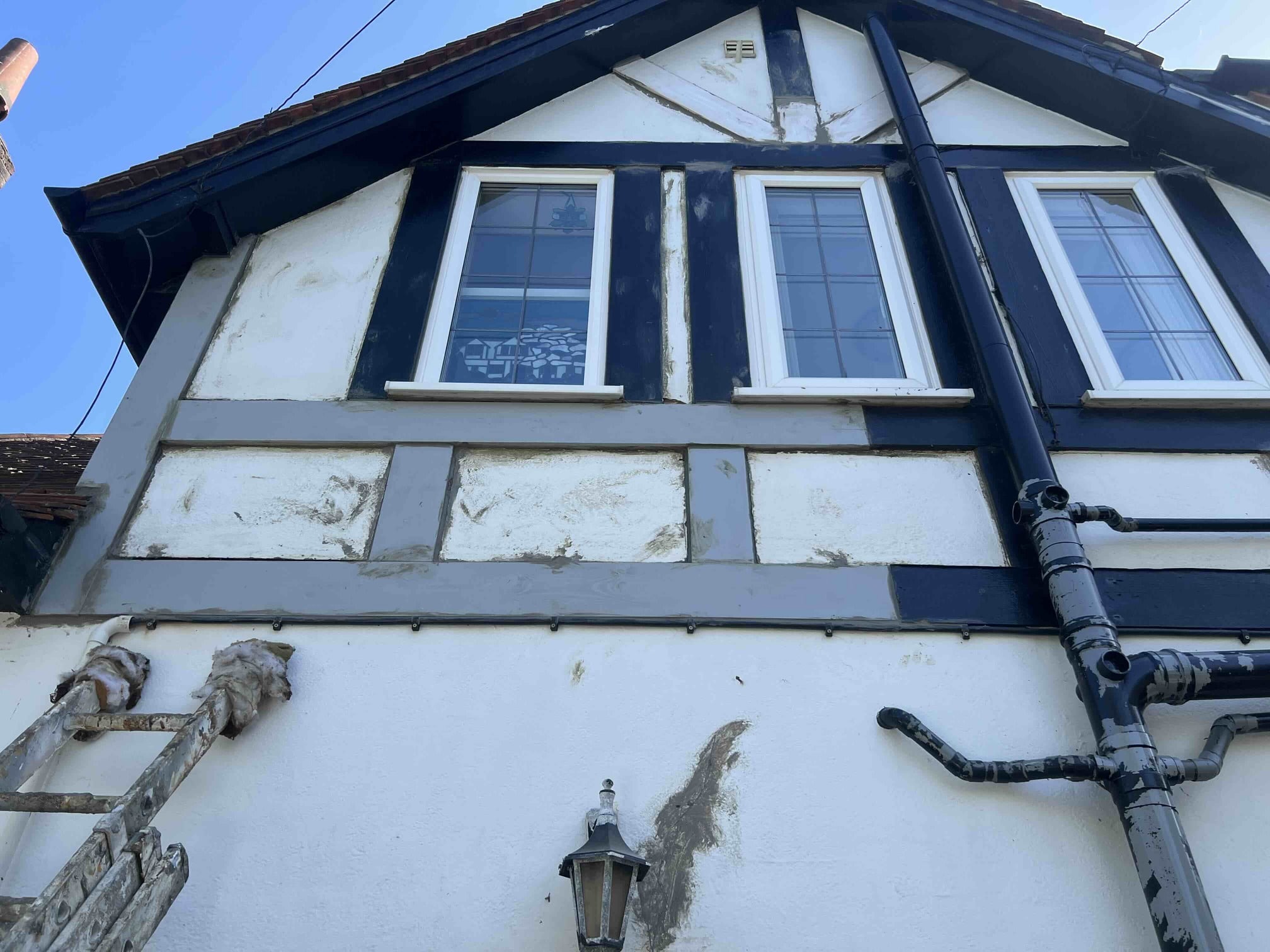This project involved the renovation of the external façade of a residential property in Hailsham, United Kingdom. Works focused on repairing and refurbishing the front elevation, including multiple repairs to the black timber panels to restore structural integrity and appearance. Additional remedial works were carried out to the exterior façade, addressing weathering and surface defects. Repairs were also completed to the surrounding concrete walls to improve durability and overall finish, resulting in a refreshed and weather-resistant exterior.